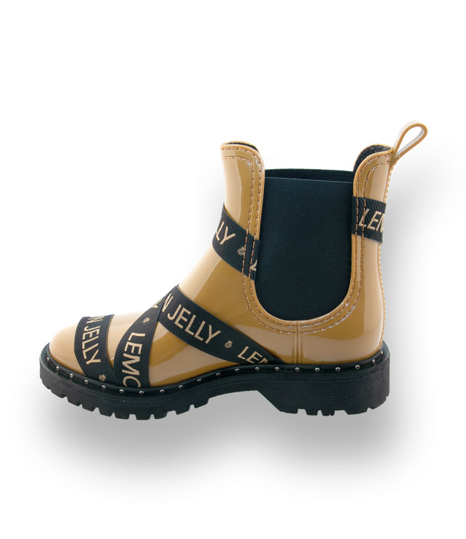Lemon Jelly Gummistiefel - Chelseaboots in ockergelb mit lustigem Logoband