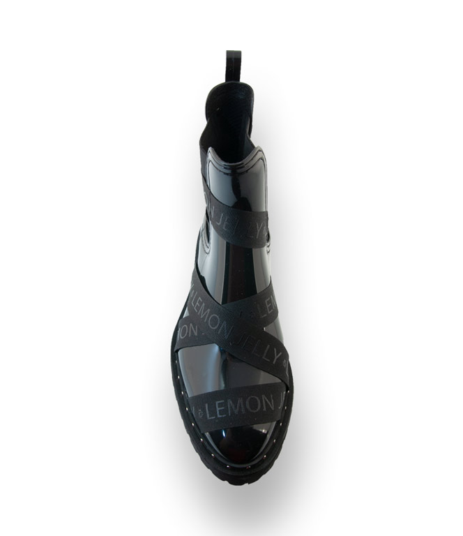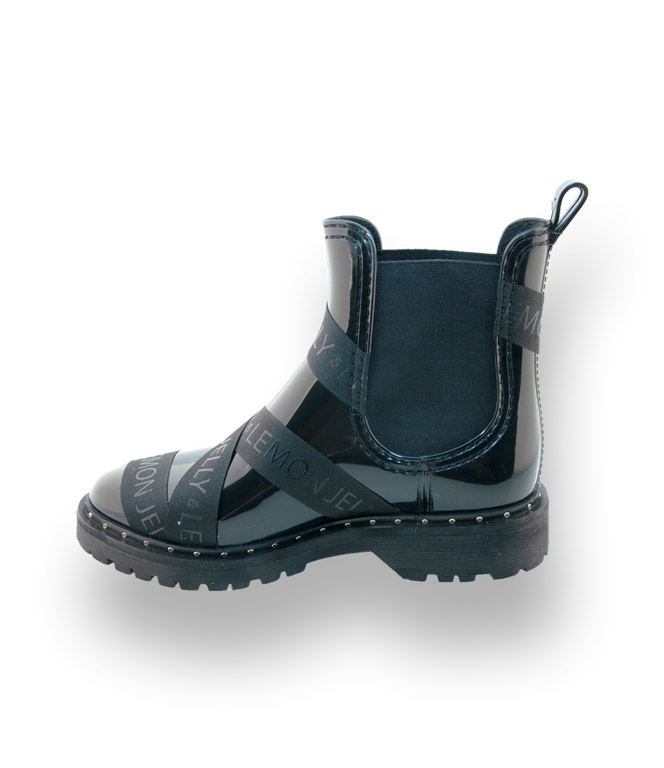 Lemon Jelly Gummistiefel - Chelseaboots in schwarz mit lustigem Logoband- VEGAN