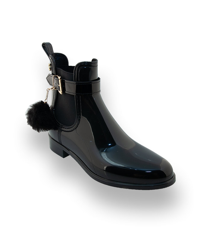 Lemon Jelly Gummistiefel in schwarz mit Fellbommel