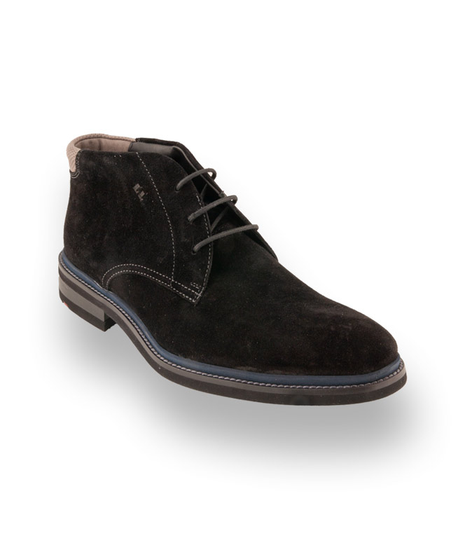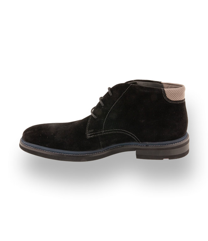 Desertboots sind der ideale Begleiter, Modell HOLMES aus schwarzem Rauleder wird sie begeistern. Die Schnürschuhe verleihen einen vielseitig kombinierbaren Look. Mit der rutschfesten Extralight®-Sohle sind Sie auch bei nassen Tagen geschützt. Die Schnürung und das weiche Rauleder sorgen für ein angenehmes Tragegefühl und die perfekte Passform.