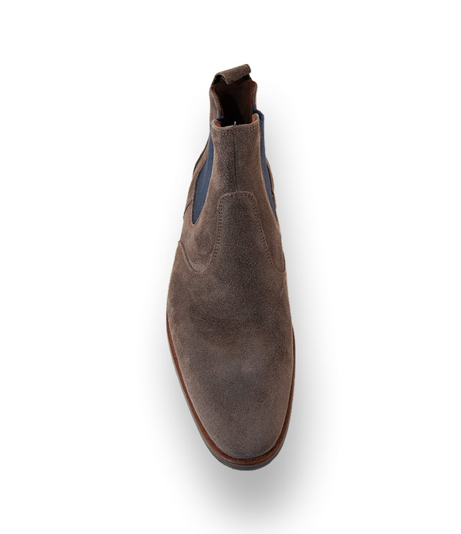 Junger, frischer und moderner Chelseaboot. Der blaue Gummi und dezente blaue Details in der Sohle werten diesen Schuh optisch auf. Handwerkliche Verarbeitung geben den gewissen Schliff. Die gepolsterte Decksohle sorgt für einen angenehmen weichen Auftritt.