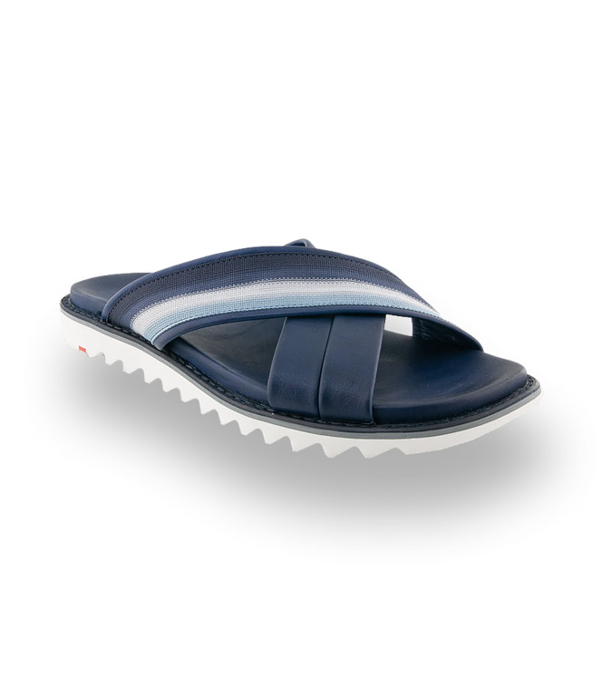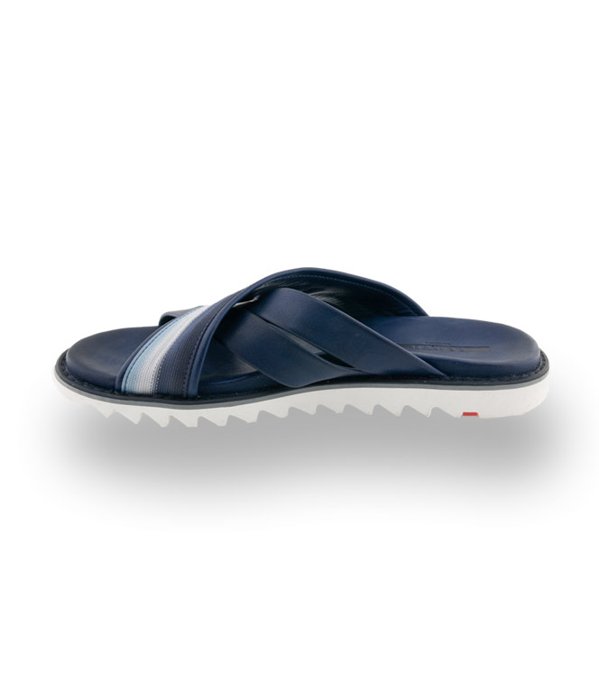 LLOYD präsentiert mit dem Modell ELFORD eine Pantolette aus blauem Glattleder mit Stoffband. Sommer, Sonne und gute Laune bringen diese Schuhe zu Tage. Angenehme Innensohle - Schalensohle und die Kreuzbandage machen diese Pantolette zum idealen Begleiter am Strand - URLAUB bitte kommen.