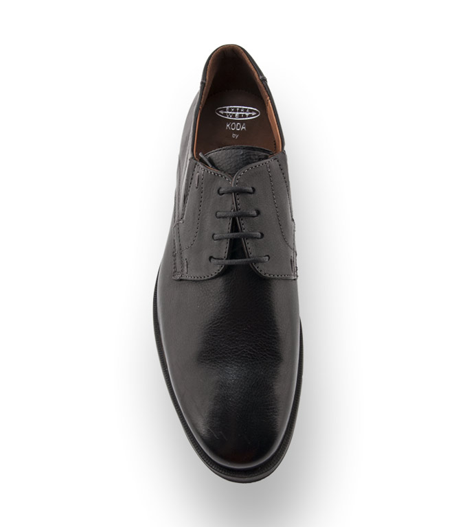 Der klassische Derby - Schnürer in weichem schwarzen Kalbsleder überzeugt durch optimale Passform. Das Modell Koda ist extraweit gearbeitet und sitzt wie angegossen. Die schlichte Linienführung wird durch Steppungen und Sohleneinsätze, in grau, gekonnt aufgelockert. Hellbraunes Lederfutter umschmeichelt den Fuß. Die leicht profilierte Gummilaufsohle garantiert Trittsicherheit. Die kontrastfarbige Gummisohle sorgt mit der angesagten Keiloptik für den modischen Akzent.
