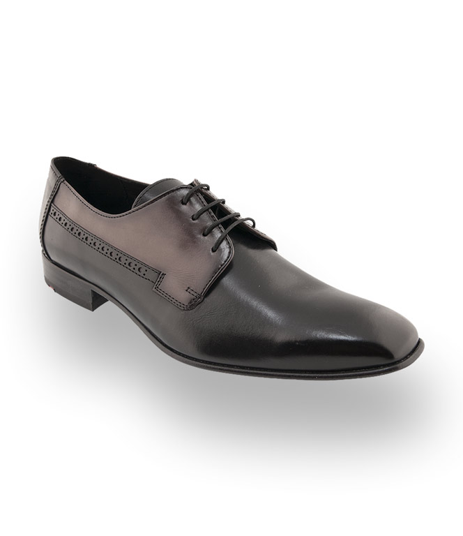 Das Modell "Lorenz" von Lloyd ist ein elegant geschnittener Schnürschuh mit dezenter Lochlyra in schwarz-graphit gehalten. Durch die modische Karreeform wirkt der Schuh jung und pfiffig. Das Hand gebürstete Kalbsleder verleiht diesem Modell einen tollen Look. Optimaler Tragekomfort bietet das Lederinnenfutter, sowie die Lederlaufsohle. Ob für den Business-Alltag oder zu festlichen Angelegenheiten ist er für den modebewussten Herren der richtige Partner.