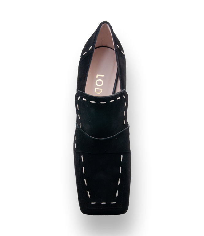 Lodi Pumps in schwarz mit hellen Nähten, Modell Nabel