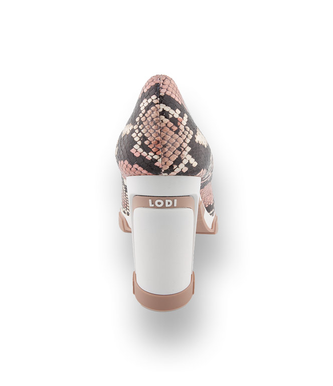 Schlangenprint pastellig zart in Rosé zieren die Pumps von Lodi. Außergewöhnlicher Blockabsatz mit Firmenlogo und eine stylische Profilsohle lassen Modeherzen höher schlagen. Eine Farbkombination die sich problemlos integrieren lässst. Ein Modell auf Highheels mit hohem Komfortpotential. Weiches Kalbsleder, Lederfutter und eine Geleinlage perfektionieren die Bequemlichkeit. Gönnen Sie sich diesen