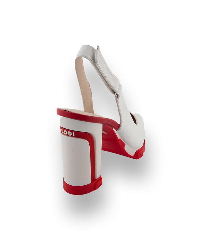 Der Sling von LODI in offwhite sorgt für den sportlichen Touch auf Highheels. Außergewöhnlicher Blockabsatz mit Firmenlogo und eine stylische Profilsohle lassen Modeherzen höher schlagen. Rot als Eyecatcher, eine geniale Kombination die ihr Outfit prägt. Ein hochwertiges Lederfutter und durch eine integrierte Gelsohle wird die 2cm hohen Plateausohle besonders weich und angenehm. Klettverschluß am Fersenriemen ermöglicht einen schnellen Einstieg.