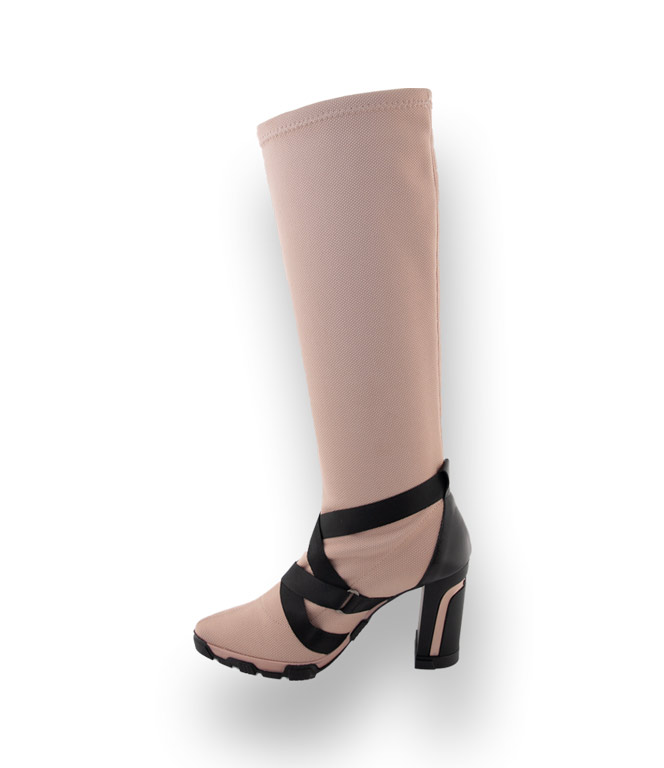 Durch sportliche Akzente beeindruckt der nudefarbene Stretchstiefel von Lodi. Textilmaterial schwarzes Fesselspiel mit Schnalle, beeindruckende Profilsohle. Ein zweifarbiger Blockabsatz von 9cm gewinnt an Tragekomfort durch ein 2cm hohes Plateau mit integrierter Gelsohle. Ein Keypiece sorgt für Power in ihrem Schuhschrank. Der Fußraum ist mit hochwertigem Leder gefüttert. Das spanische Label Lodi glänzt durch extravagante Styles.