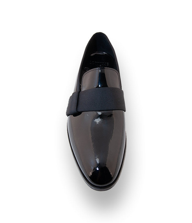 Die breite Bandage aus Rips unterbricht gekonnt die schmale Silhouette. Der durchgenähte Slipper ist mit hochwertigem Leder gefüttert und Rips eingefasst. Traditionelle Handwerkskunst und stilvolles Design für höchste Ansprüche. Die perfekte Ergänzung zum Frack oder Smoking. Die Ledersohle verpflichtet zum Tanz.