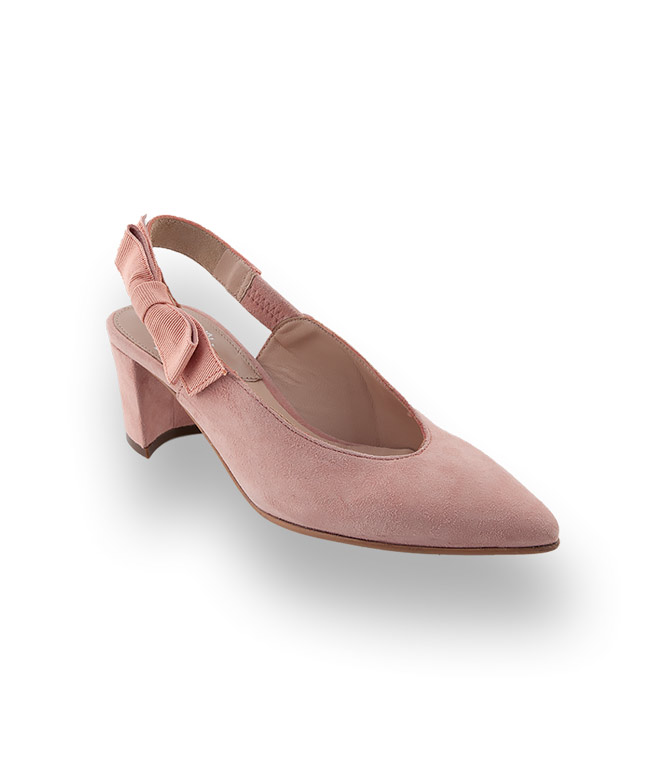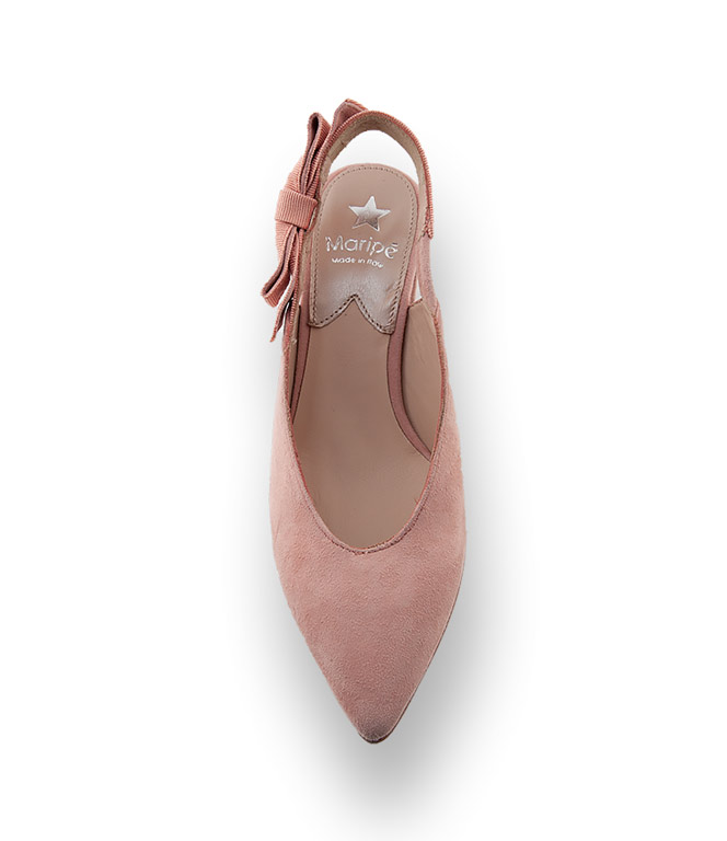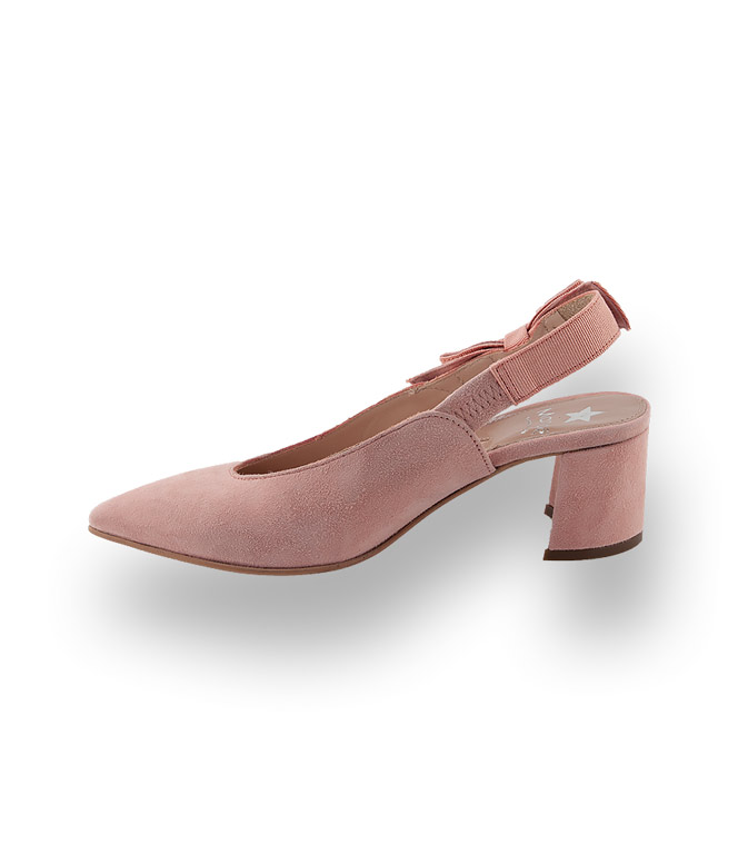 Maripe Sling in rosa Velours mit kleiner Schleife seitlich