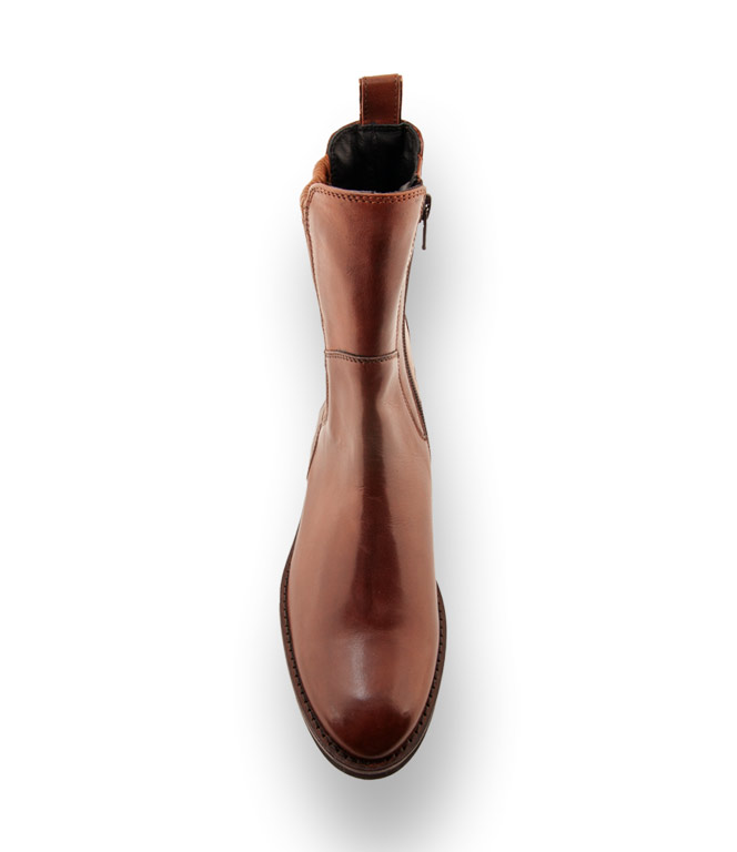 Der braune Chelsea-Boot von Maripé lässt einen Hauch von Wild West erkennen und ist ein modisches Kombinationstalent. Das exclusive, weiche Leder und die Details wie das geprägte Leder an der Ferse zeichnen diesen Schuh aus. Der seitliche Reißverschluß und der Elasthaneinatz erleichtert den Schlupf.