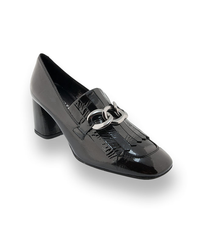 Maripé Loafer in grau Lack mit Absatz und Schmuckkette