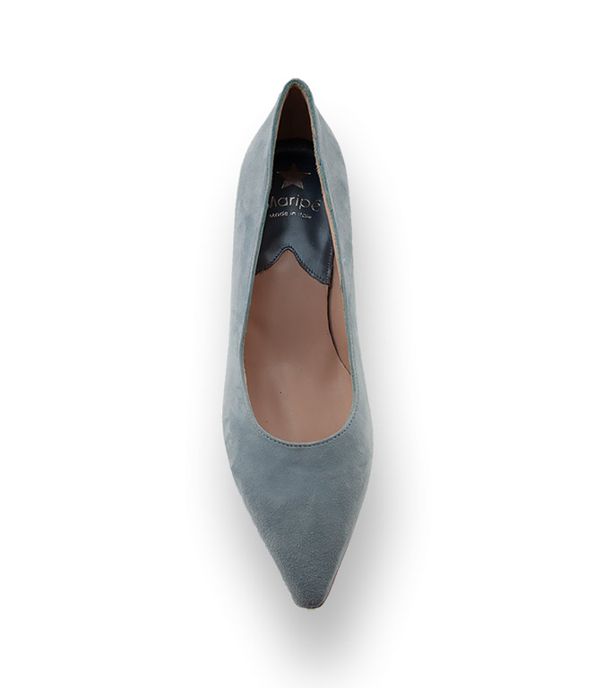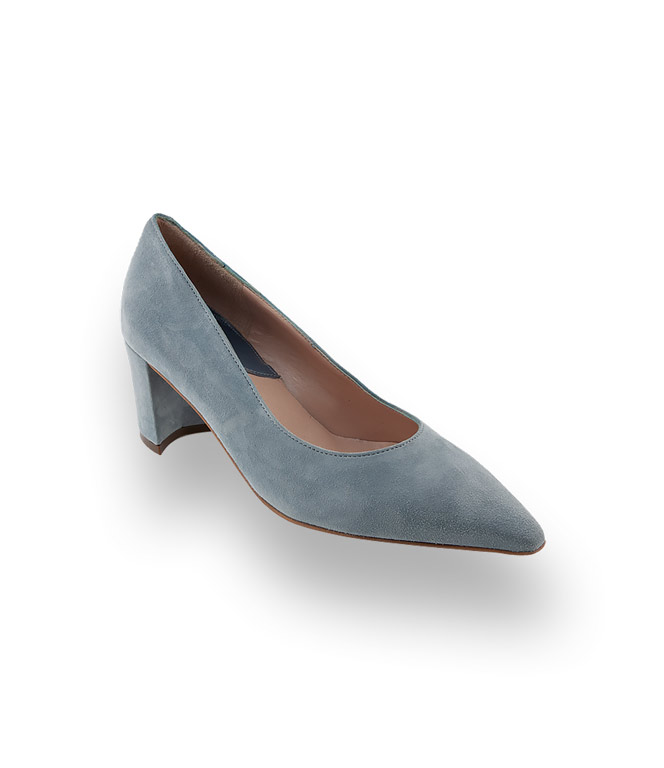 Spitzer Block-Pumps aus hellblauem Veloursleder von Maripé zur Hose oder zum Rock ein perfekter Begleiter. Schöne Qualität mit einem Lederfutter und einer Kunststofflaufsohle wird dieses Modell ein begehrtes Fashionteil für alle Gelegenheiten. Weich gepolstert mit einem stylischen 6cm Absatz für unbeschwerte Stunden.