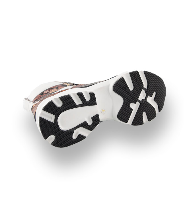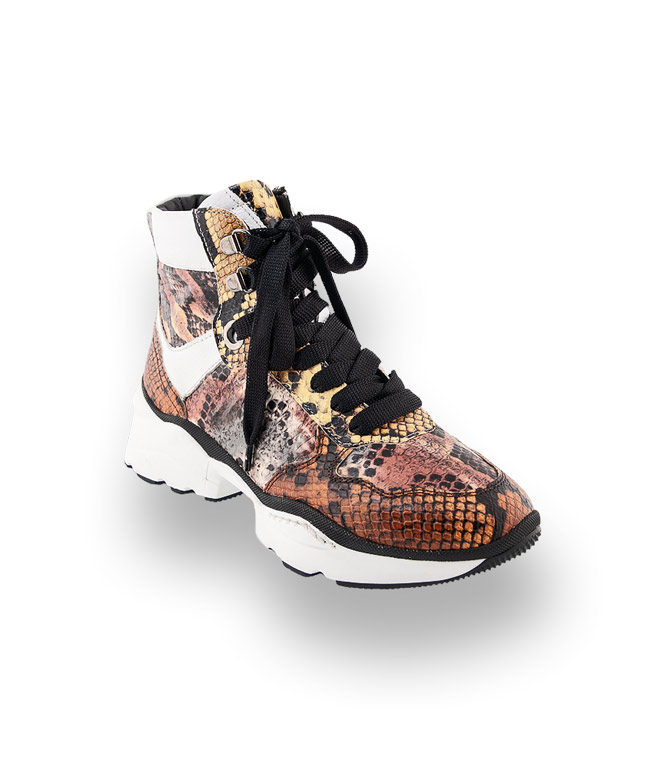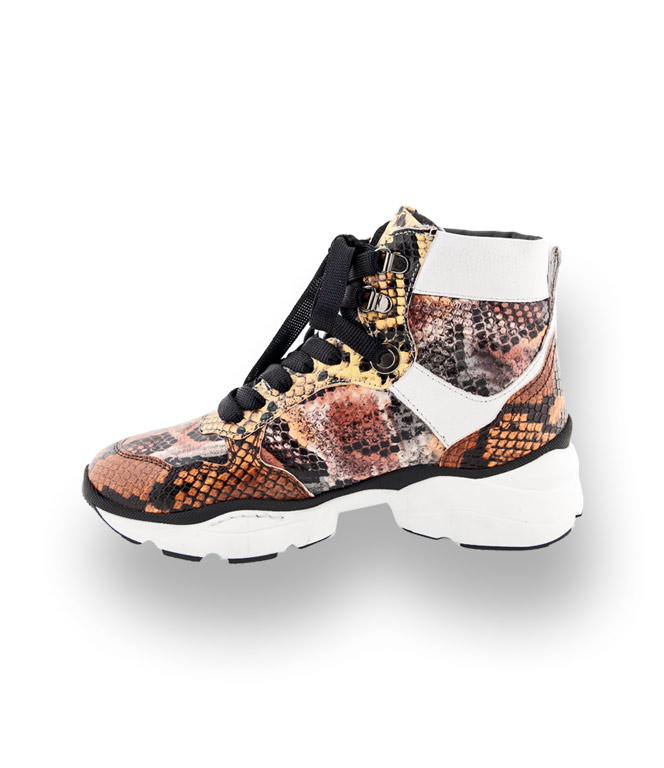 Maripé Sneakerboots in braun Schlangenprint und weißer Sohle