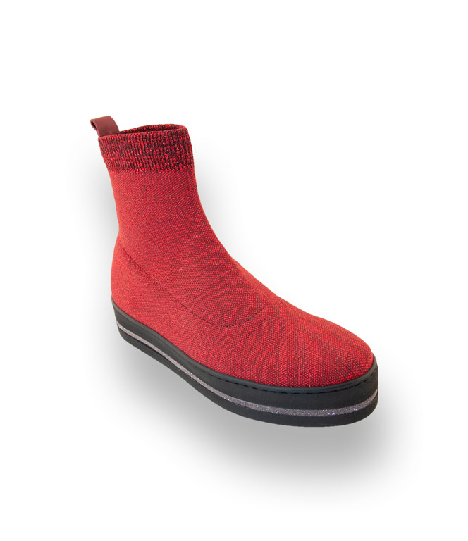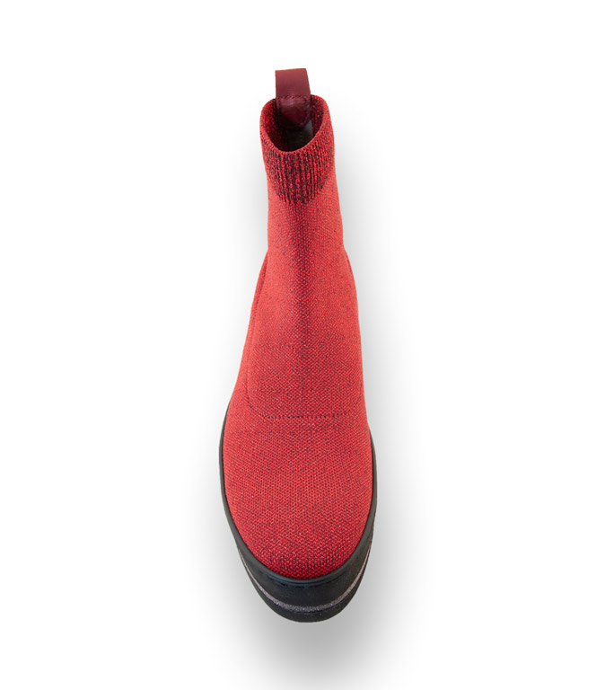Maripé Stiefelette "Sockboots" in rot - Lurex mit Streifen im Plateau