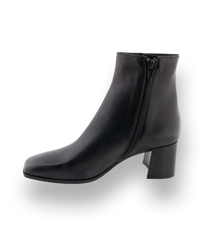 Eine schwarze Stiefelette von Maripé die ihr Outfit optimal ergänzt. Blockabsatz und Karree ist Pflicht. Feinstes weiches Leder und ein hochwertiges Lederfutter perfektionieren den Komfort. Ein Reißverschluss sorgt für einen angenehmen Einstieg. Eine Kunststofflaufsohle schützt vor Nässe. Kein lautes Beiwerk. Schlichte Ankle-Boot unterstreichen unangestrengte Eleganz.