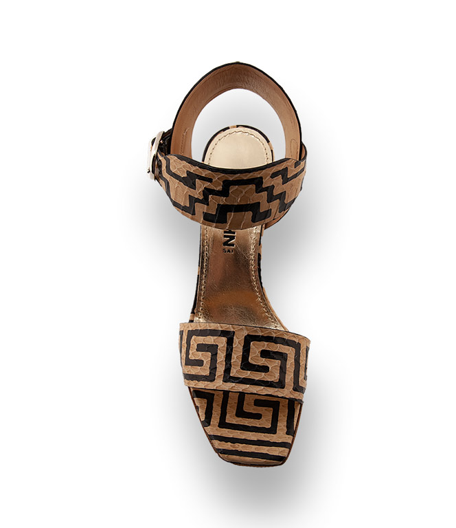 Mit dieser Kreation de Luxe von Mia Jahn sind Sie immer perfekt gestylt. Eine Sandale die überall passt, zum Business-Meeting bis in die Bar. Aus kostbaren beigem Schlangenleder mit einem linealen Muster bedruckt, wirkt sie außerordentlich feminin und sehr verführerisch. In modischer Karreeform, einem bezaubernden Fesselriemen und goldfarbenen Lederfutter, steht die Sandale im modischen Fokus. Ein Sommerschuh für ihren großen Auftritt. MIA JAHN unübertroffen SCHÖN