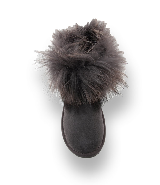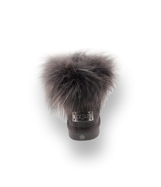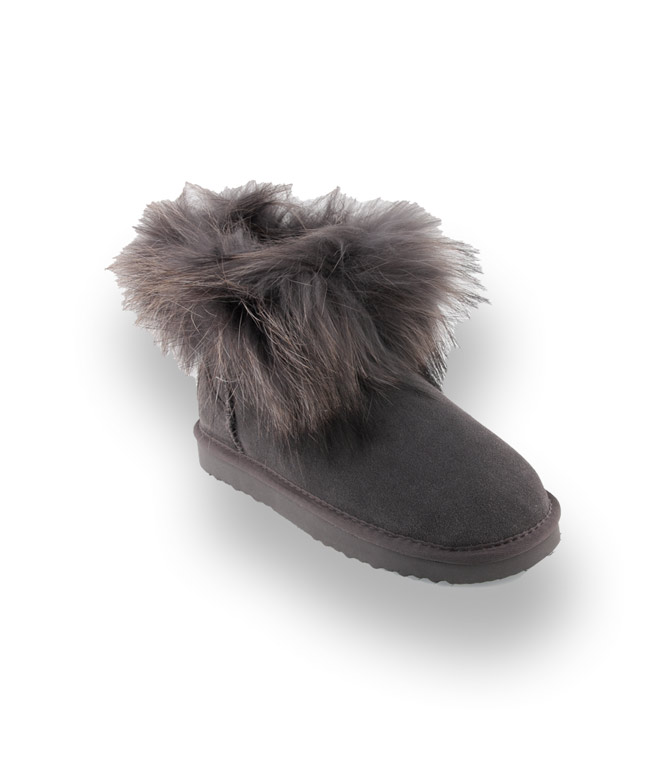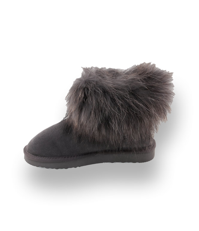 OOG Boots in grau mit Fellkragen, Lammfellfutter