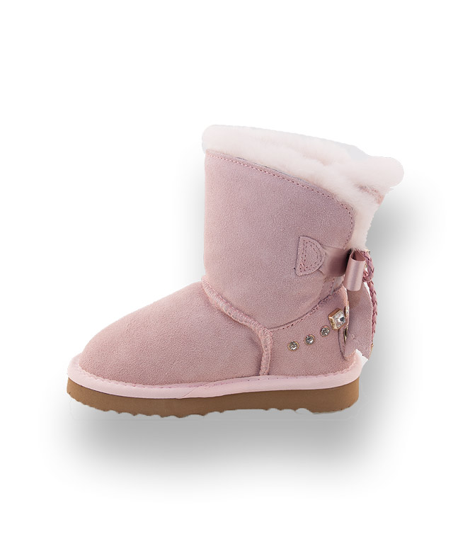OOG Kinderboots in rosa velours mit Schmucksteinen