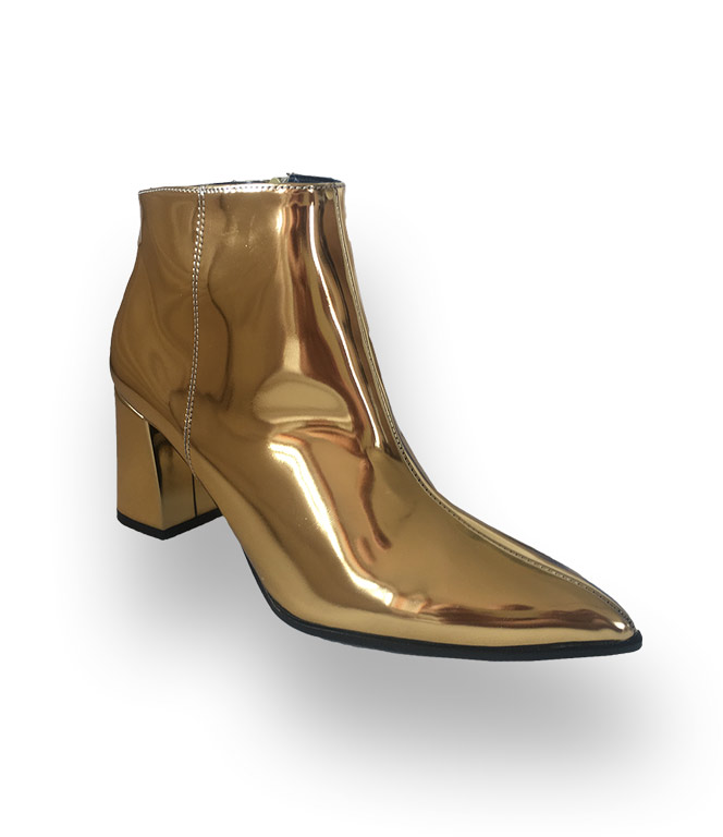 Feminine Farbpalette von zartem Pink bis zu kräftigem Lila und auffällige Metallic-Booties von Paco Gil. Ein optisches Signal für Emanzipation und Gleichberechtigung. Frauenpower im coolen Goldfarben-Metallic in spitzer Form mit Mittelnaht und trendigen 6cm hohen Blockabsatz. Paco Gil verwendet hochwertige Materialien. Kalbsleder, Lederfutter und eine Gummilaufsohle sorgen für einen bequemen stilvollen Auftritt und ein Reißverschluss begünstigt den Einstieg.