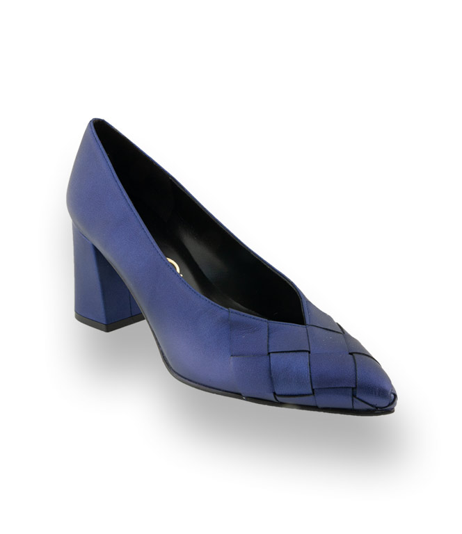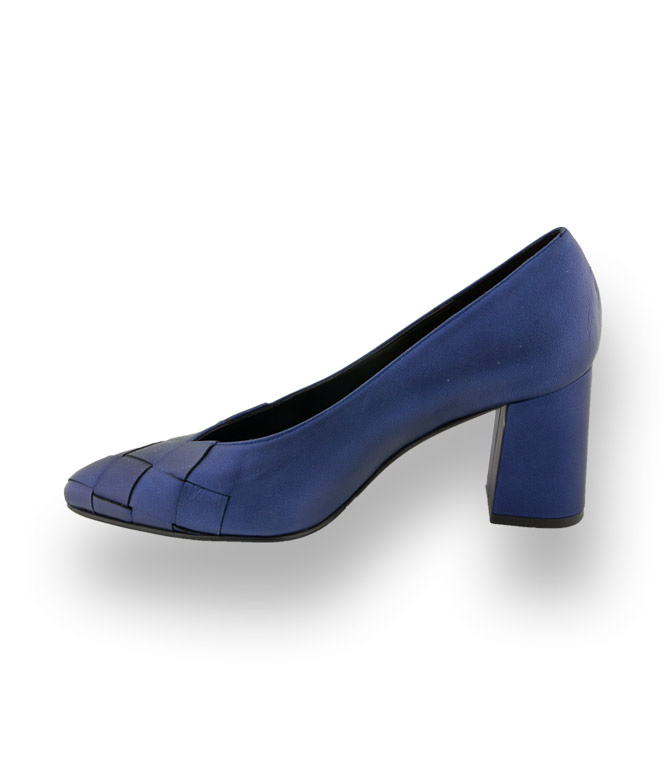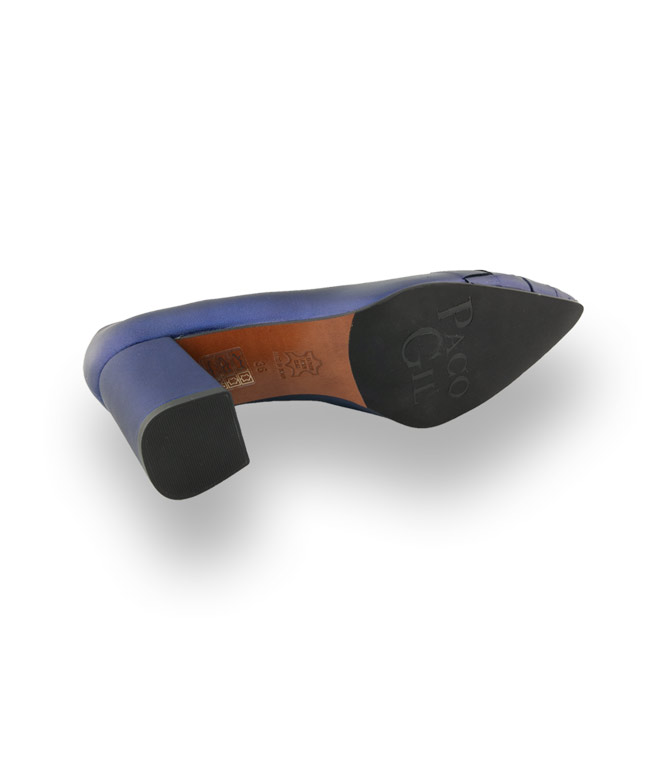 Traumhafter spitzer Pumps von Paco Gil aus blauem Kalbsleder bekommt durch den metallischen Glanz seine einzigartige Wirkung. Der trendige 7cm hohe Blockabsatz ist schick und bequem zugleich. Alltagstaugliche Pumps kann man bekanntlich nie genug haben. PACO GIL verwendet hochwertige Materialien in bester Verarbeitung. Die Flechtung an der Kappe ist das modische Highlight und verleiht diesem Schuh seine Einzigartigkeit.