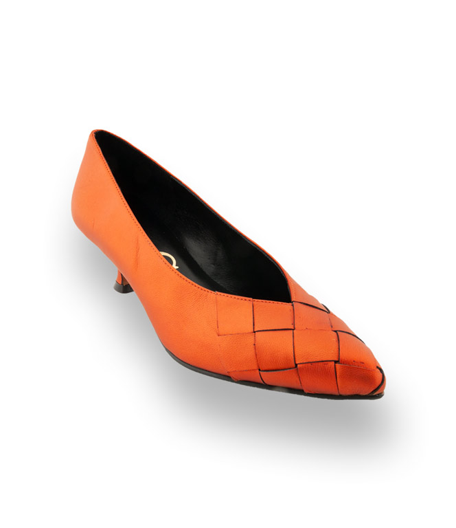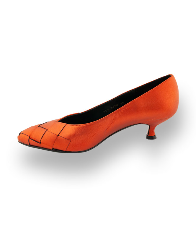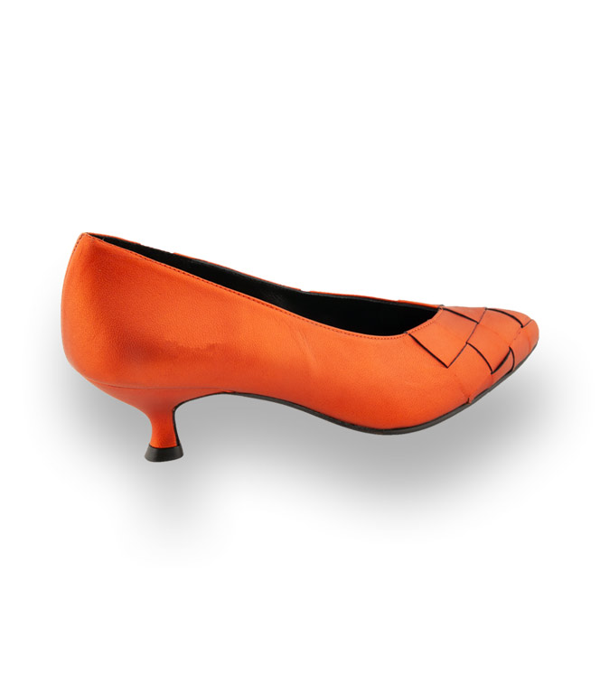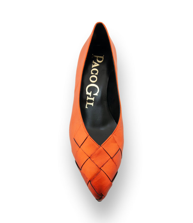 Farbkontraste sind gefragt und die Wirkung ist enorm. Die trendigen Pumps von Paco Gil aus edlem Kalbsleder in erfrischenden Farben wie Orange bringen Farbe in den tristen Alltag. Spitze Leistenform in wunderschöner Flechtoptik mit einem 4,5cm hohen Kittenheel überzeugen modebewusste Frauen. Spielen Sie mit ihrem Outfit und kombinieren Sie wild drauflos.