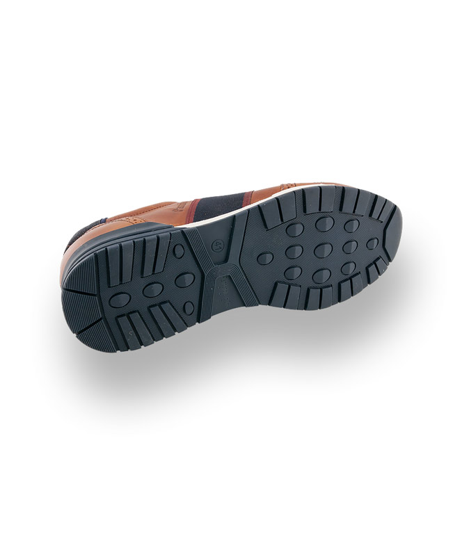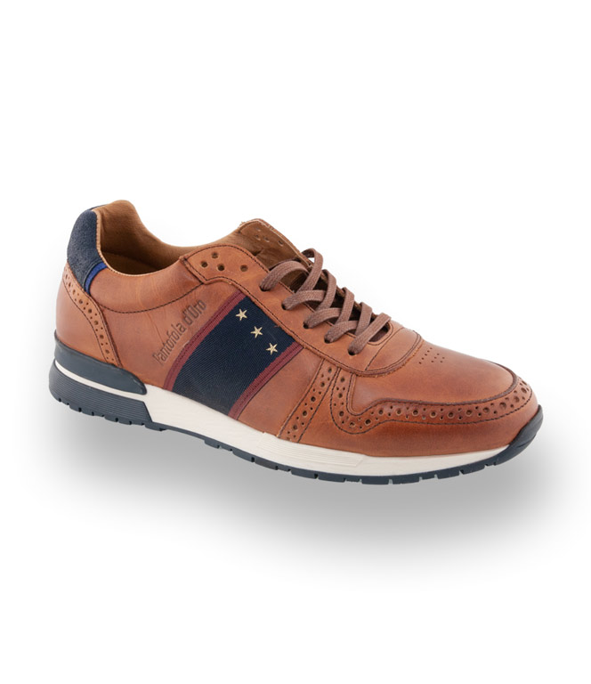 Rehbraunes Glattleder wurde mit marineblauen Akzenten ergänzt. Das Firmenlogo und die dezenten 3 Sterne dürfen natürlich nicht fehlen. Die helle Gummilaufsohle dämpft ihre Schritte. Der gepolsterte Rand, und die austauschbare Innensohle sorgen für Bequemlichkeit.