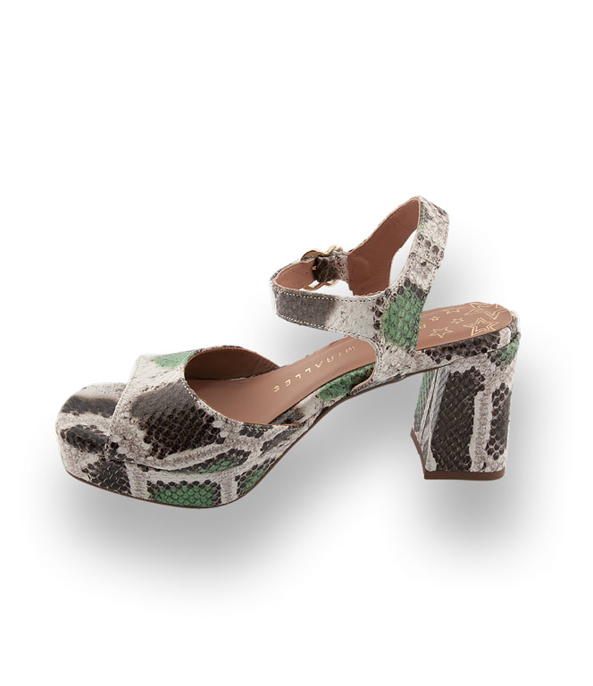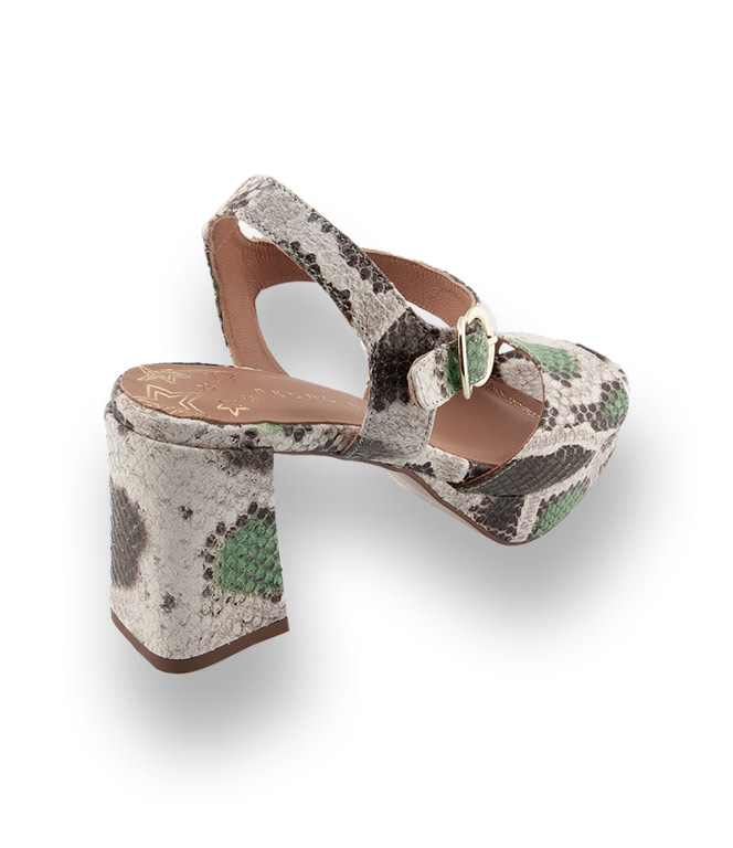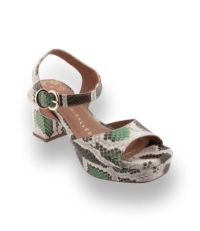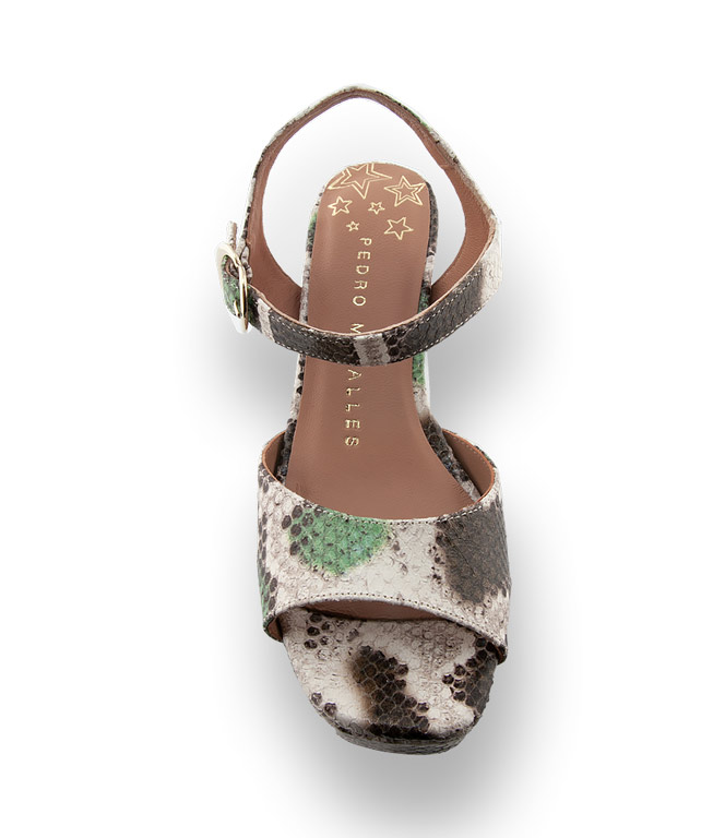 Pedro Miralles Sandale in beige grün Schlangenprägung mit Plateau