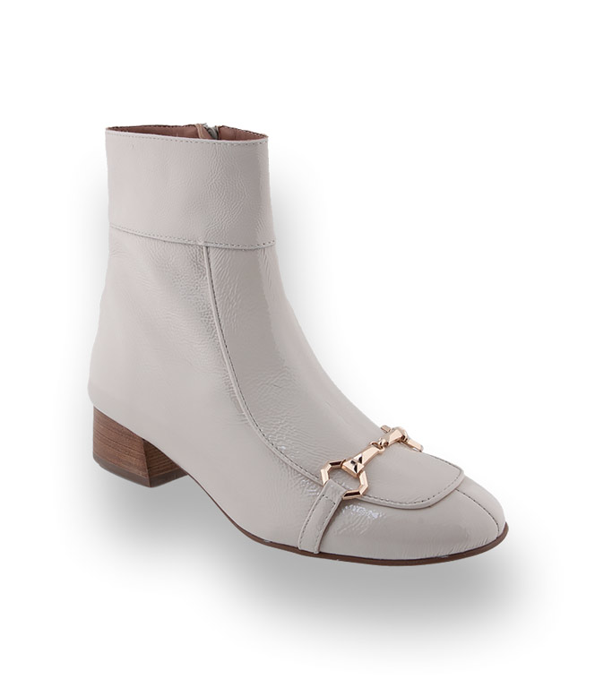 Pedro Miralles Stiefelette in offwhite Lack mit Schmuckkette