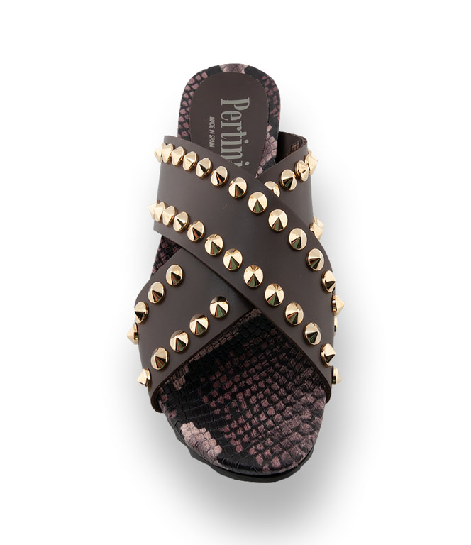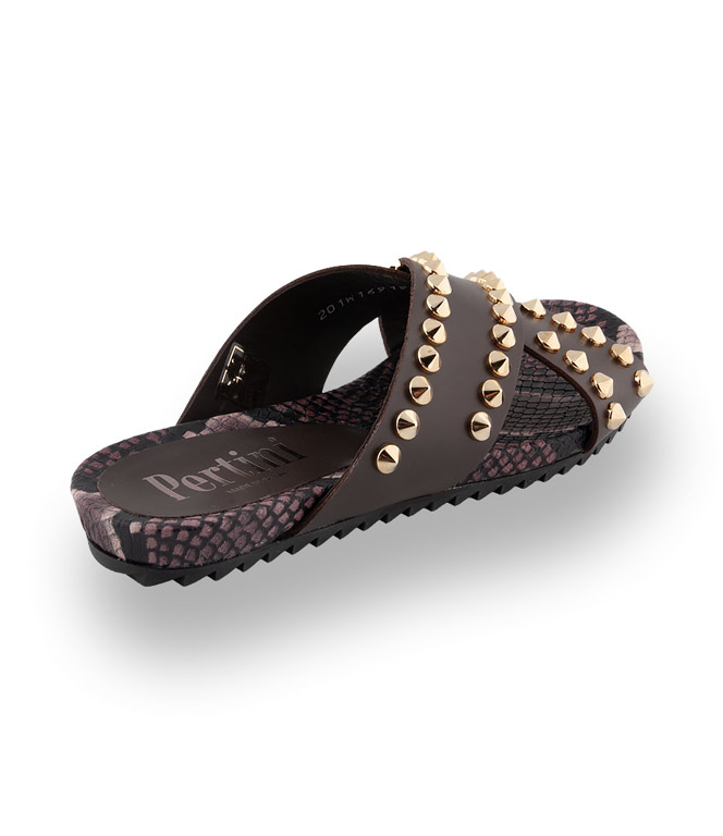 Pertini Pantolette in braun mit goldfarbenen Nieten
