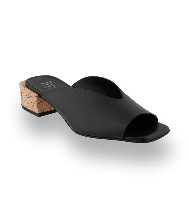 Angenehmes schwarzes Ziegenleder, Lederfutter und eine Lederlaufsohle unterstützen den Tragekomfort. Ein 4cm hoher Korkabsatz wird zum Eyecatcher. Der V-Ausschnitt perfektioniert den Halt. Clean-Chic für die schönsten Tage im Jahr.