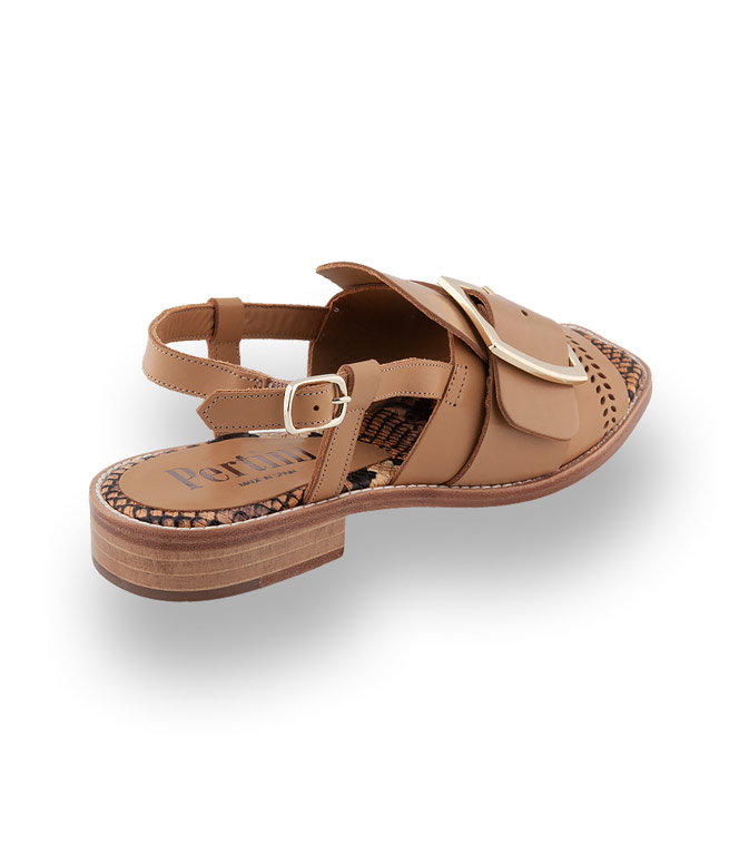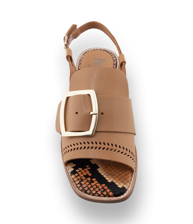 Pertini Sandale in naturbraun mit großer Schnalle und Karreeleisten