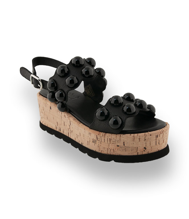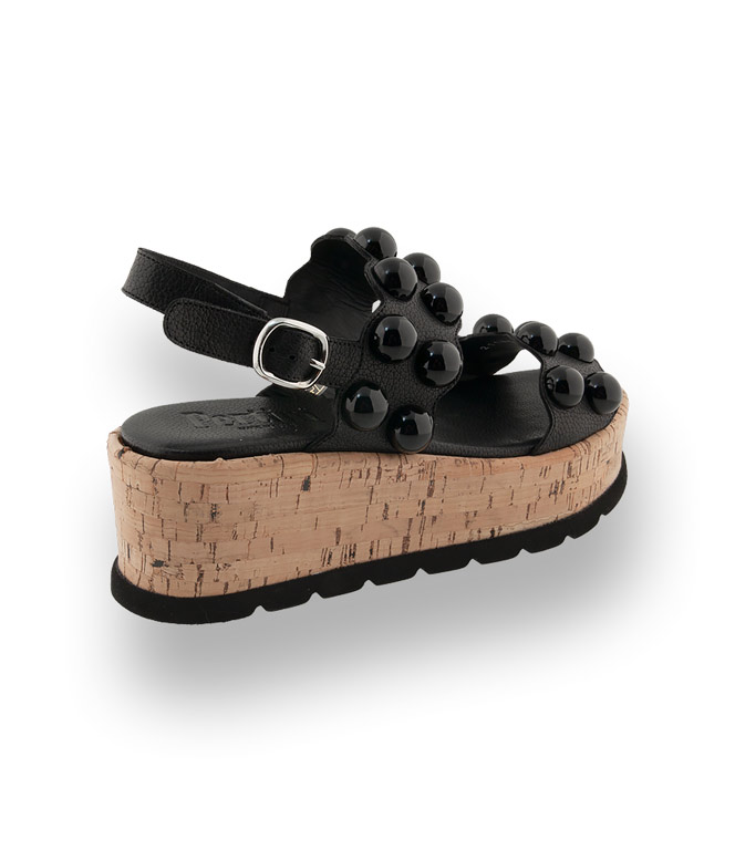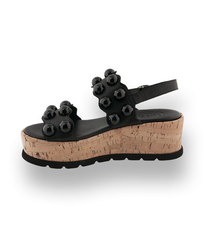 Pertini Sandale in schwarz mit Kugelschmuck und Korkplateau