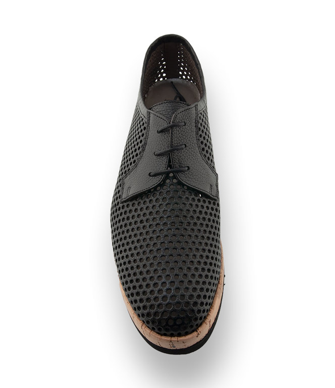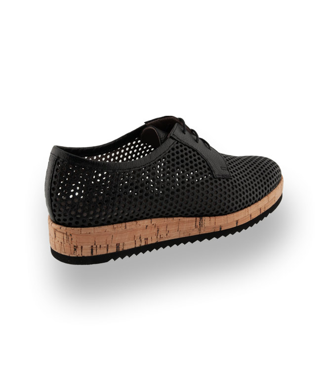 Luftig leichter schwarzer Schnürer mit hohem Wohlfühlpotential an heißen Sommertagen. Korkplateau sorgt für Fashion-Furore. Pertini verwendet hochwertige Materialien in bester Verarbeitung. Weiches Kalbsleder und Lederfutter garantieren den nötigen Tragekomfort. Ein idealer Begleiter für ihre Casual-Styles.
