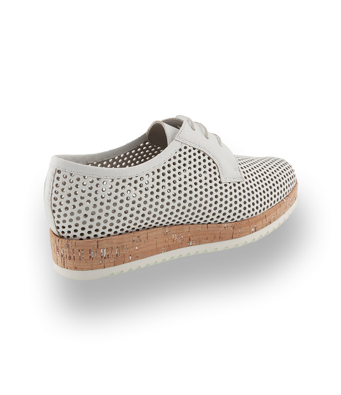Luftig leichter weißer Schnürer mit hohem Wohlfühlpotential an heißen Sommertagen. Korkplateau sorgt für Fashion-Furore. Pertini verwendet hochwertige Materialien in bester Verarbeitung. Weiches Kalbsleder und Lederfutter garantieren den nötigen Tragekomfort. Ein idealer Begleiter für ihre Casual-Styles.