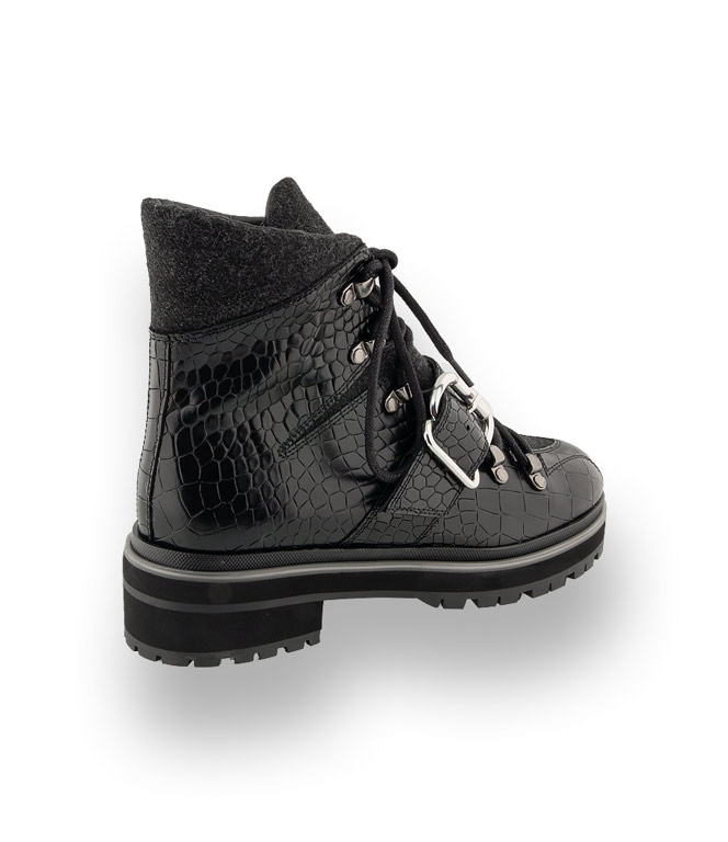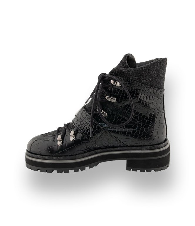 Pertini Stiefelette im Bergsteigerstil in schwarz Krokoprägung
