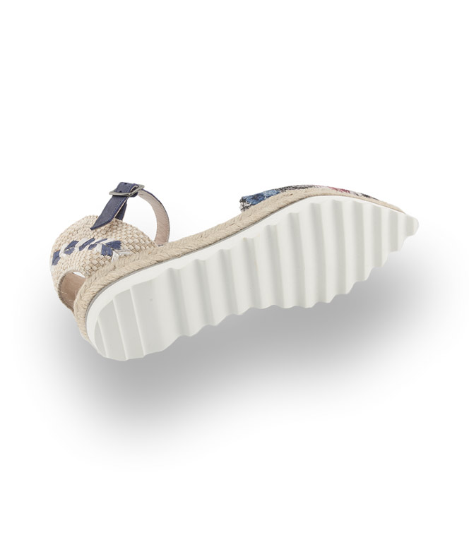 Pimientos Espadrilles mit Haifischsohle in blau, Blumendruck