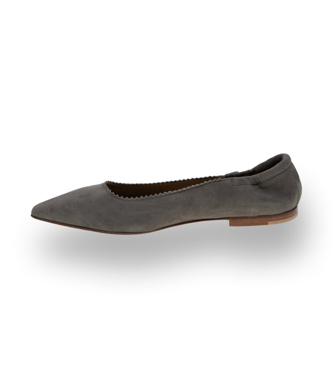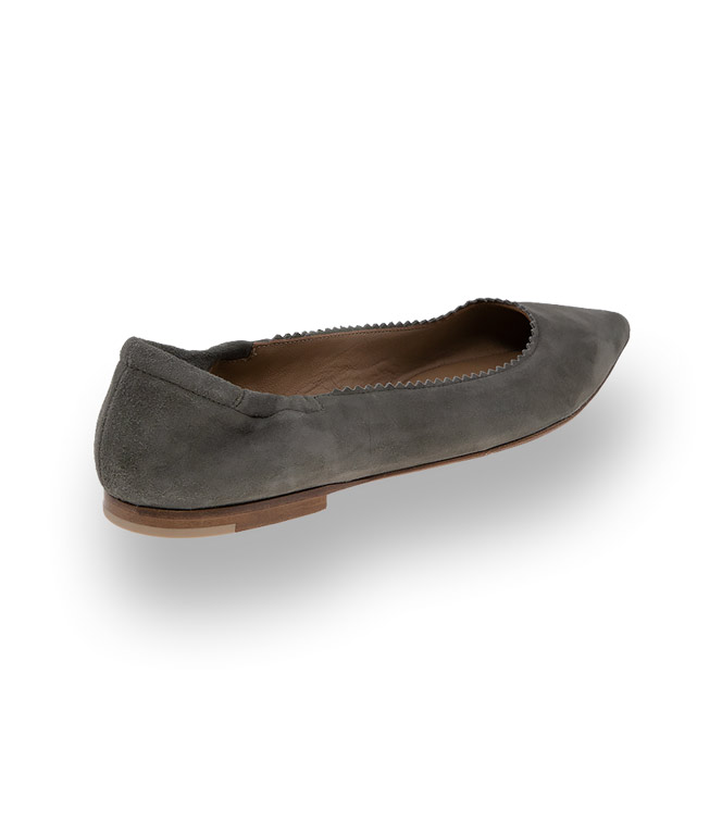 Die spitze Form mit zackigen Abschluß im zeitlosen Style überzeugt selbst die anspruchsvollste Frau. Feinstes Veloursleder und die Sacchetto Machart, Lederfutter wird dem Oberleder vernäht, machen den Klassiker enorm flexibles und anschmiegsam. Eine Lederlaufsohle mit Gummieinsatz verstärkt den außergewöhnlichen Tragekomfort. Die kleinen Gummizüge im Fersenbereich erhöhen die faszinierende Passform. Pomme D'Or aus Italien steht für handwerkliches Geschick und hochwertigste Materialien.