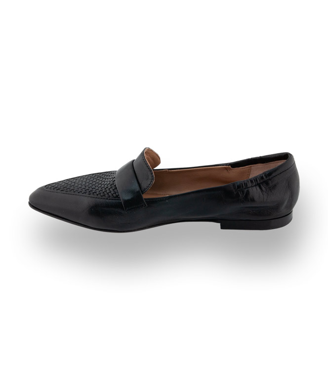 Loafer von Pomme D'Or in schwarz Nappaleder mit Flechteinsatz