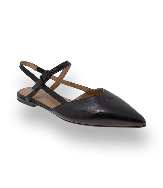 Slingbacks sind traumhafte Alleskönner die ihren Streetstyle modisch aufwerten. Pomme D'or verwendet weiches schwarzes Ziegenleder. Ein Lederfutter und eine Lederlaufsohle mit Gummieinsatz unterstützen den Tragekomfort. Das Rist-Riemchen mit zierlicher Spange und ein Fersenriemchen mit Elasthaneinsatz verleihen dem spitzen Flachen einen easy - eleganten Look.