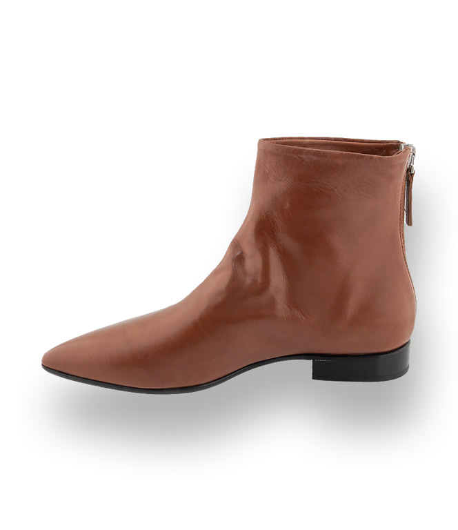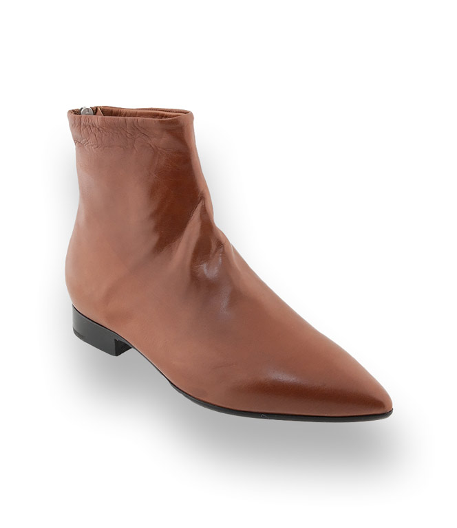Spitz zulaufende Stiefelette von POMME D'OR begeistert im Tragekomfort. Hochwertige Sacchetto-Machart und feinstes braunes Nappaleder versprechen eine perfekte Passform. Reinschlüpfen und sich wohlfühlen. Ein Reißverschluss an der Ferse, hochwertiges Lederfutter und eine Lederlaufsohle mit einem rutschsicheren Gummieinsatz perfektionieren den Komfort. Lassen Sie sich verwöhnen und genießen Sie die stille Schönheit von Mode, die zu allem passt und über jeden Trendruf erhaben ist.