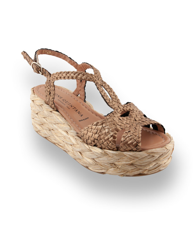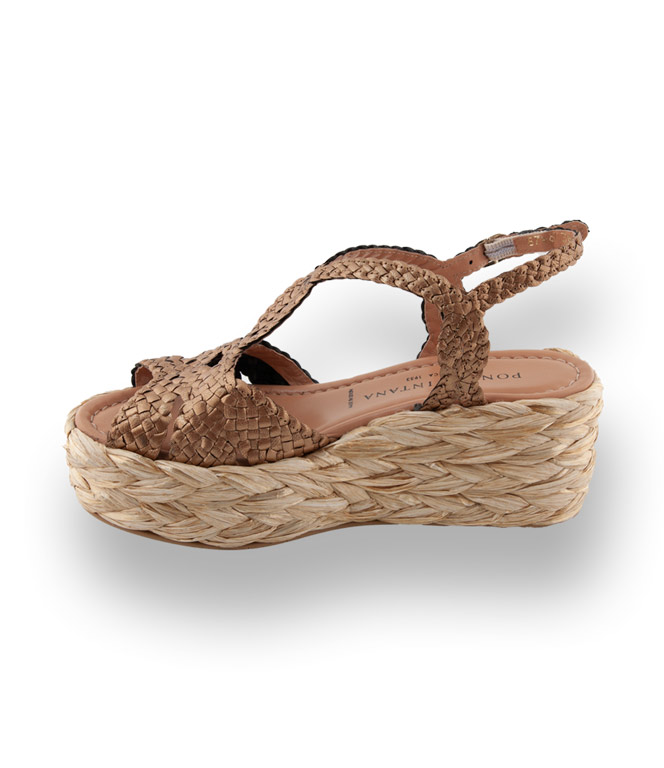 Ein Trend der die neue Sommersaison bestimmt, sind Sandalen mit Keil, der sich bei diesem Modell von PONS QUINTANA mit Zöpfen aus Bast besonders hervorhebt. Die Sandale zeigt sich im kunstvollen Geflecht. Aus hochwertigen Materialien, handgefertigte Flechtarbeit und eine sehr weich gepolsterte Lederdecksohle beeinflussen den Tragekomfort. Ein Allrounder für die coolsten Parties des Sommers.