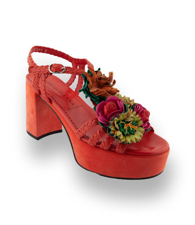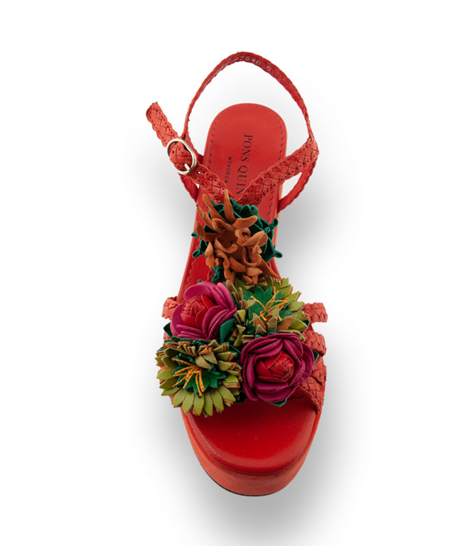 Pons Quintana Sandalette in korallrot mit bunten Blumen