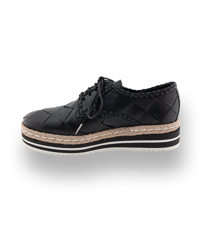 Legerer Luxus - Schwarzer Schnürer von Pons Quintana in herrlicher Flechtarbeit aus Kalbsleder begeistert in Qualität und Design. Eine besonders leichte Microsohle mit dekorativen Hanfzopf am Rahmen, weich gepolsterte Lederdecksohle und eine zierlicher Lederflechtung am Schaft schmücken das edle Modell. Dieser modische Begleiter lässt ihrer Kreativität freien Lauf.