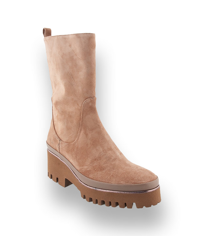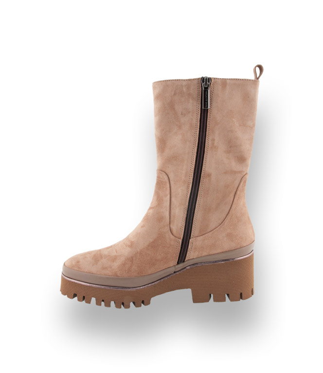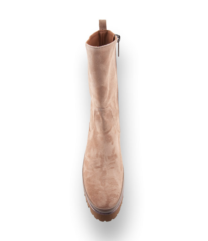 Der höhere Schaft aus beigem weichem Velours verwöhnt ihre Füße. Die markante Profilsohle liegt voll im Trend. Der sichtbare Rahmen und die Einfassung unterstreichen den edlen Look. Ein Reißverschluss garantiert einen raschen Einstieg. Stilbruch ist ein großes Thema für die neue Saison. Derbe Stiefel werden zu zarten Kleidern und Röcken kombiniert. Mit diesem Stiefel sind sie nicht nur modisch auf der richtigen Seite sondern auch für Schmuddelwetter bestens gerüstet.