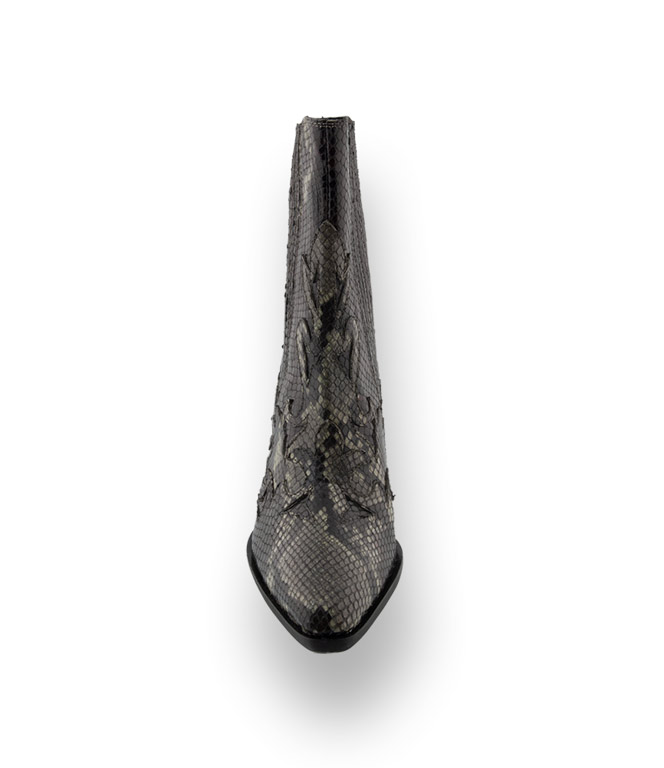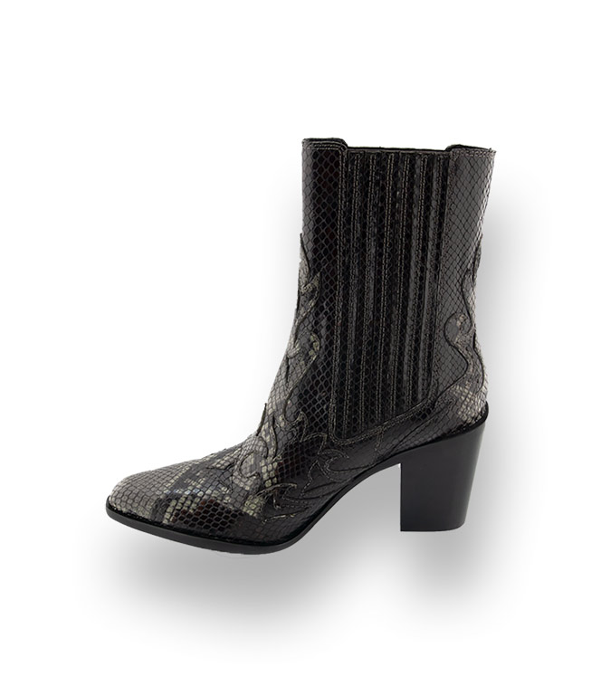 Vor allem im grünen Schlangenprint löst man den Wow-Effekt aus. Pons Quintana beeindruckt durch hochwertige Materialien und jungem Design. Westernstiefel ergeben ein starkes Modebild das beeindruckt. Schlank zulaufende Karreeform und das farbige Pythonprint das eine Lilie am Vorderblatt zeigt. Perfekt für Power- Frauen die ihren individuellen Streetstyle mixen. Hochwertiges Lederfutter und ein 7,5cm hoher Absatz, eine Gummilaufsohle mit rutschsicherem Einsatz perfektionieren den Tragekomfort.