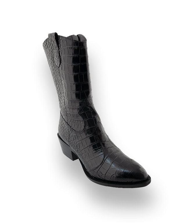 Pons Quintana Westernstiefel in schwarz Krokopraegung