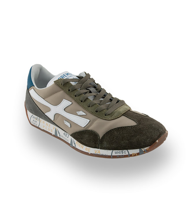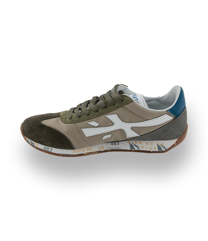 Premiata Herrensneaker, Modell Jackyx grün mit grau und blau