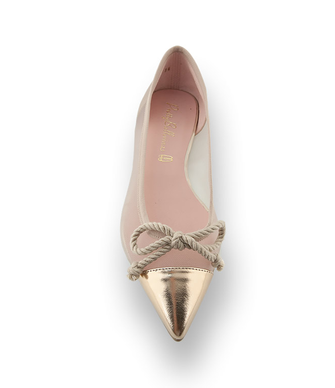 Atemberaubende Kreationen zeigen sich auch in der Schuhmode. Spitzer Ballerina im goldfarbenen Metallicleder und beigem Mesh von Pretty Ballerina für stilvolle Momente. Zierlich mit edlem Charme zeigt sich der traditionelle Flache. Eine Lederdecksohle und eine flexible Gummilaufsohle sorgen für hohen Tragekomfort.