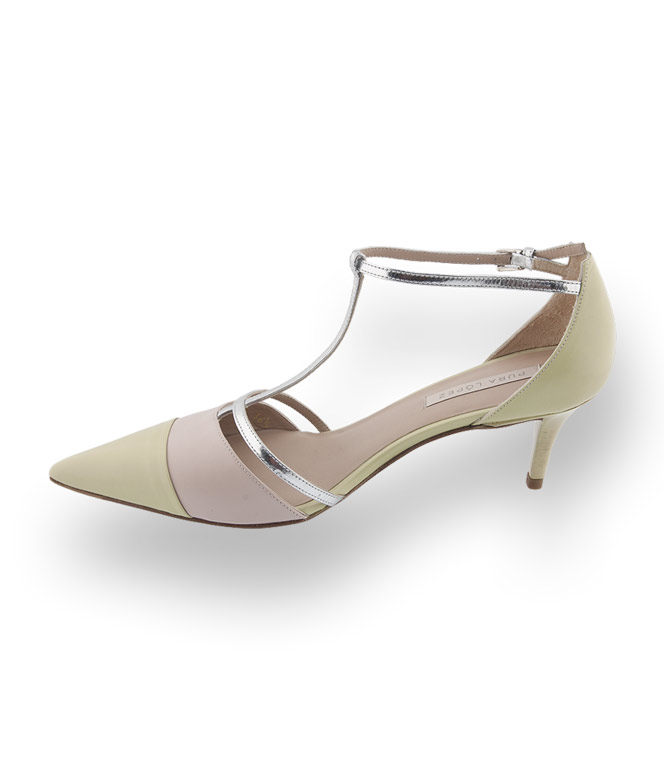 Delikates Farbspiel in schönster Harmonie. Zarte Töne wie Lindgrün, Nude und die T-Spange in Silber laden Sie ein in die Welt der Romantik mit Dahin-Schmelz-Garantie. Mut zum sexy Lingerie-Look und verspielte Rüschenroben ist eine heiße Liaison. Pura Lopez verwendet hochwertiges Leder und der 6cm unempfindliche Schichtabsatz ist in grün eingefärbt. Die zierliche Ferse, die dünnen Riemchen und der spitze Leisten versprühen Sexappeal. Schuhe von PURA LOPEZ ein Paradies für Frauen...